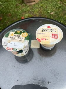 我が家はプリン2個とヨーグルトを選択。外で食べるスイーツは格別で、息子も嬉しそうに食べていました。
