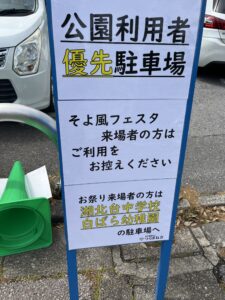 イベント当日は混雑が予想され、「そよ風フェスタ」来場者は近隣中学校の臨時駐車場の利用案内がありました。車で訪れる場合は、時間に余裕を持って行動するのがおすすめです。