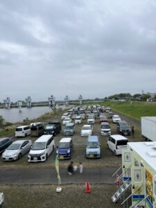 実際に行ってみると、駐車場は河川敷の原っぱ。区画整備されているわけではなく、空いているスペースに自由に停めるスタイルです。